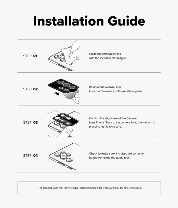 Dán camera Samsung Galaxy S26 Ultra RINGKE Lens Frame Glass gồm 3 lens rời, chất liệu kính cường lực trong suốt với khung viền kim loại màu đen bảo vệ tối ưu cho camera, độ trong suốt cao cho phép chụp ảnh với chất lượng rõ nét, không ảnh hưởng tới hiệu năng của camera.